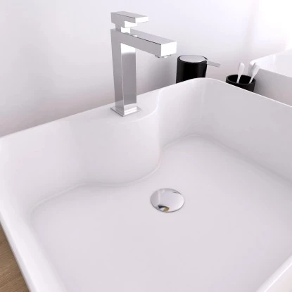 Aurlane Waschbecken Fjord 48 Cm Rechteckig Abgerundet Weiß