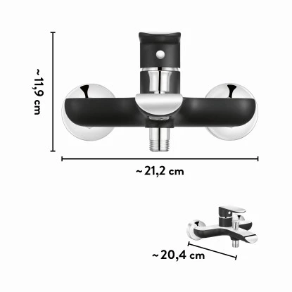 Kontrastreich in Form und Farbe: So begeistert die baliv Wannenarmatur WA-5071 dich und deine Familie! Der untere Teil der Armatur ist durch ihre abgerundete Form geprägt und bietet einen interessanten Kontrast zum oberen Teil der Armatur, der flach und kantig gearbeitet ist. Die zweifarbige Gestaltung in Chrom und Schwarz unterstützt dabei das Design – eine Badarmatur, an der du dich einfach nicht satt sehen kannst. Und damit du einfach zwischen Wannen- und Brausefunktion wechseln kannst, hat dieser Einhebelmischer einen praktischen Umsteller.
