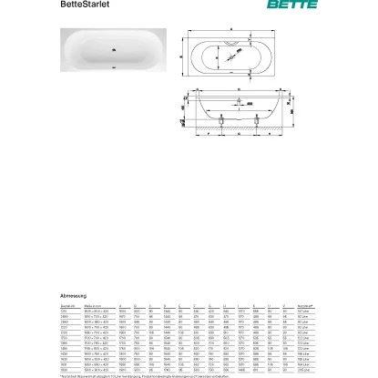Die Rechteck-Badewanne Bette Starlet mit 180 cm Länge fügt sich mit ihrem symmetrischen Design harmonisch in ihre Umgebung ein. Der mittig platzierte Ablauf sorgt für bequemes Baden auch zu zweit.
