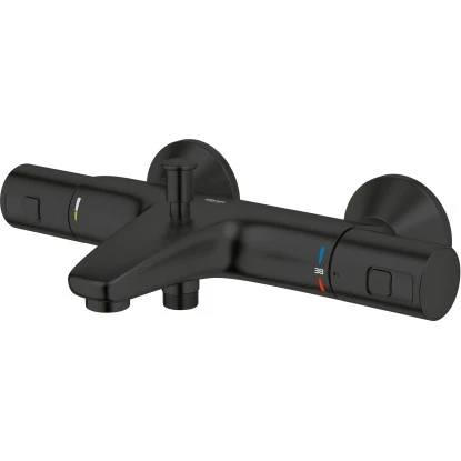 Die Grohe QuickFix Thermostat-Wannenbatterie Precision Start bietet Ihnen eine unkomplizierte und familienfreundliche Badeerfahrung. Mit ihrem schlanken und zylindrischen Design verleiht sie Ihrem Badezimmer einen modernen und minimalistischen Look. Die wandmontierte Armatur ist mit erstklassigen Sicherheitsfunktionen und intuitiven Bedienelementen ausgestattet. Das Thermostatgehäuse aus Massivmetall enthält die innovative Grohe TurboStat Technologie, die das Wasser konstant auf der gewünschten Temperatur hält, selbst bei schwankendem Wasserfluss. Dadurch können Sie ein angenehmes und konstantes Badeerlebnis genießen.
