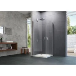 Die Tür öffnet platzsparend nach innen und außen. So ist die Pendeltür inklusive Seitenwand auch für kleine Bäder bestens geeignet. Der verdeckte Heb-Senk-Mechanismus garantiert eine erhöhte Dichtigkeit und ein zuverlässiges Schließverhalten der Tür.