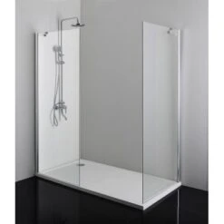 Die Verbindung mit der passenden Seitenwand, welche für die Positionierung neben einer Badewanne auch verkürzt bestellt werden kann, ermöglicht die Platzierung der Duschkabine in der Ecke des Bades.